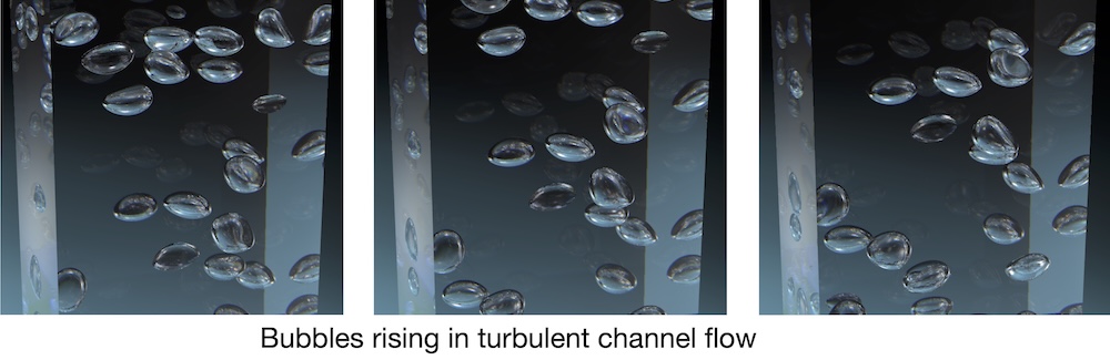 TSZ The key to our ability to simulate a wide variety of multiphase flows is the front tracking method introduced in a 1992 Journal of Computational paper. As in many other methods, the conservation equations are solved on a fixed, usually structured, grid and the different phases or fluids identified by a marker or index function that moves with the fluid velocity. Advecting the marker function on the fixed grid is surprisingly challenging and several ways have been proposed to do so. We bypass those challenges by tracking the phase boundary using a separate, usually unstructured, grid and construct the marker function from the interface grid. This results in an accurate and versatile method that has been successfully used to simulate a very large number of multiphase systems, in many cases for the first time. Here is a simple introduction to the method, using Matlab codes for 2D flows. For more details, including references to extensions to flows with heat transfer, phase changes (boiling and solidification), surfactants,chemical reactions, electric fields, and other physical processes, click here.